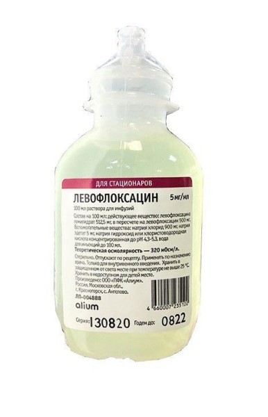 Левофлоксацин, раствор для инфузий 5 мг/мл 100 мл 10 шт флаконы: Инструкция по применению